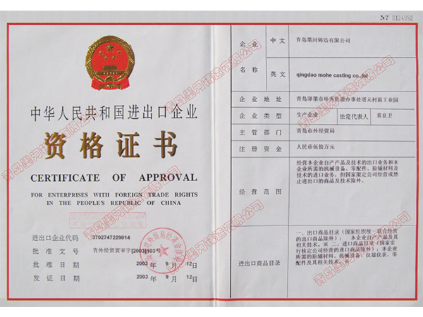 青島墨河鑄造有限公司 聯(lián)系人:董照 電話:13953213469(微信同號) 座機(jī):0532-87566543 郵箱:mohe@moher.cn QQ:1678294021 地址:青島即墨市泰山一路南端186號